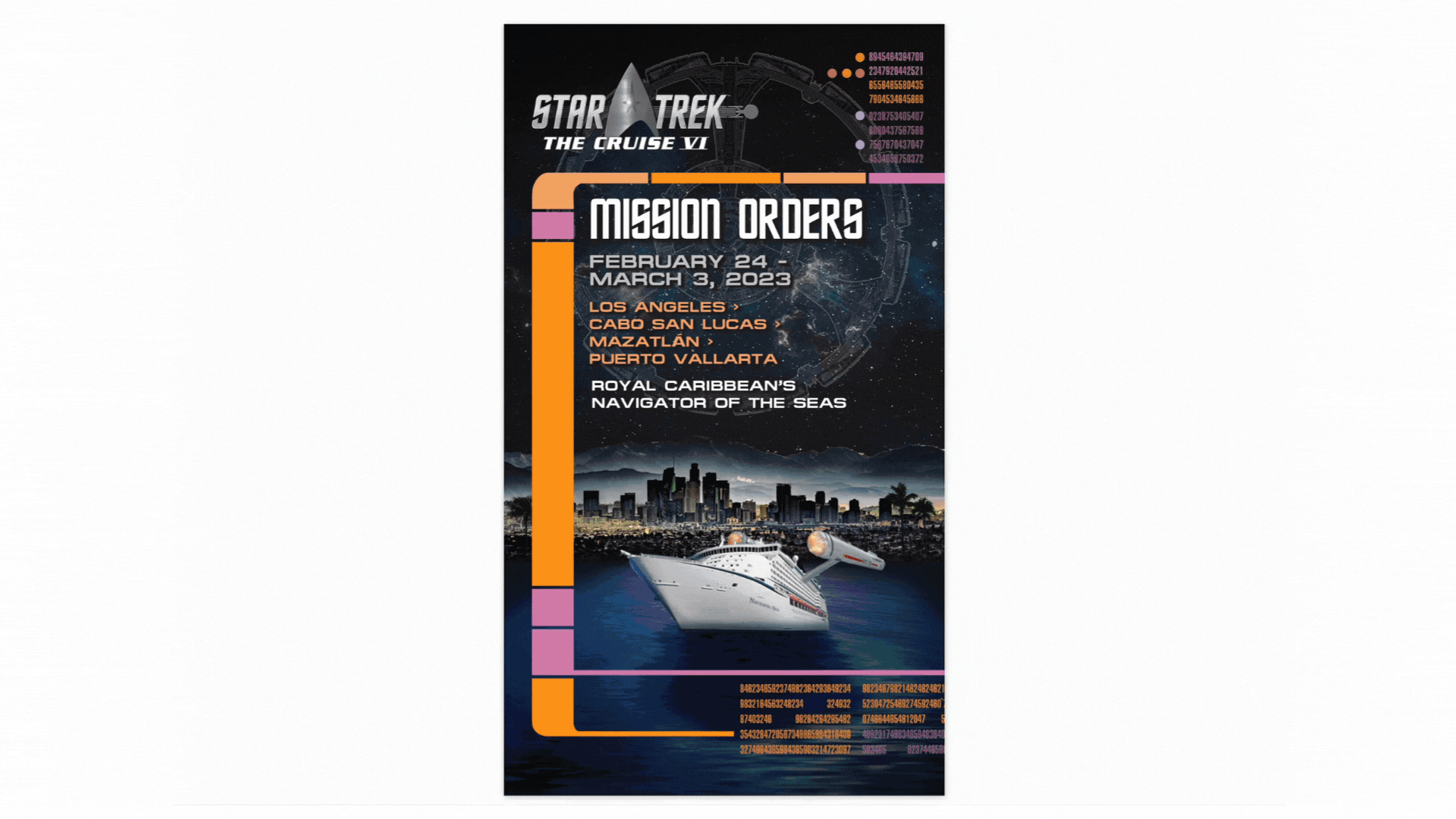 Each year our team dives deep into the world of Star Trek to create a fully immersive experience, uniting a star-studded crew and the most passionate Star Trek fans in the universe. During this 7-day Un-Conventional Voyage, attendees aren't just mere passengers; they join the Crew and become an integral part of the enchanting and magnificent world of Star Trek!